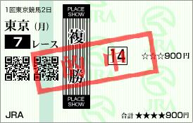 確定。複勝140円。1,000円購入で払い戻しは1,400円。来週は1,400円からスタート。